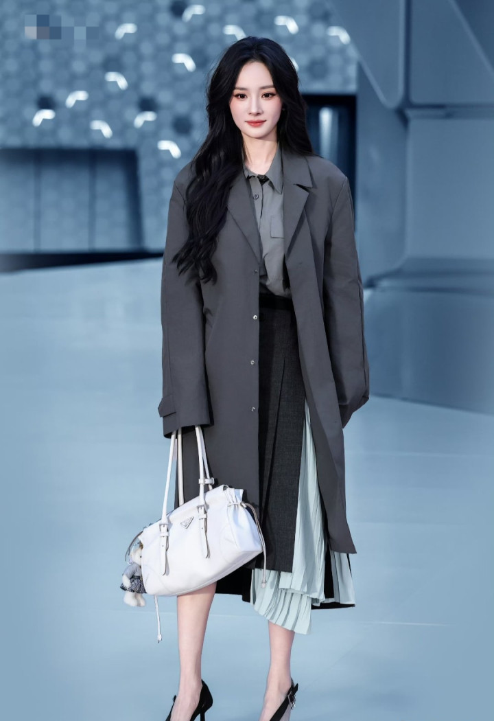 1月22日,杨幂和马龙同框出席当作,杨幂身穿普拉达灰色衬衫加半身裙,外穿灰色西装式大衣,孑然作事女性装饰,简约大气不失机尚,化身成穿Prada的女王。